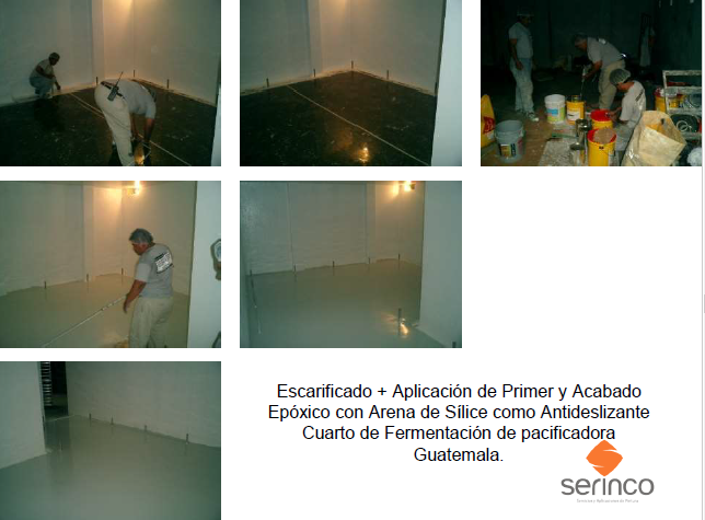 ESCARIFICADO + APLICACIÓN DE PRIMER Y ACABADO EPÓXICO CON ARENA DE SILICE COMO ANTIDESLIZANTE CUARTO DE FERMANTACIÓN DE PACIFICADORA GUATEMALA